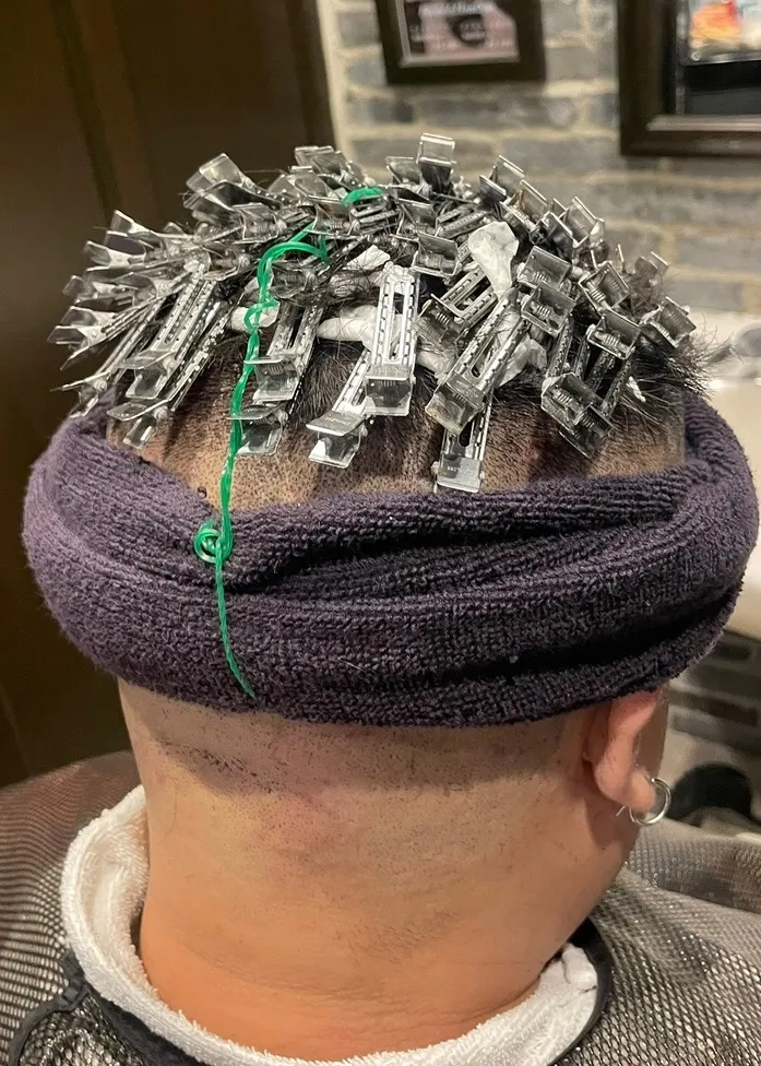 固めマットポマードでスポンジでセットしてあげるとショートドレッド風になるし、