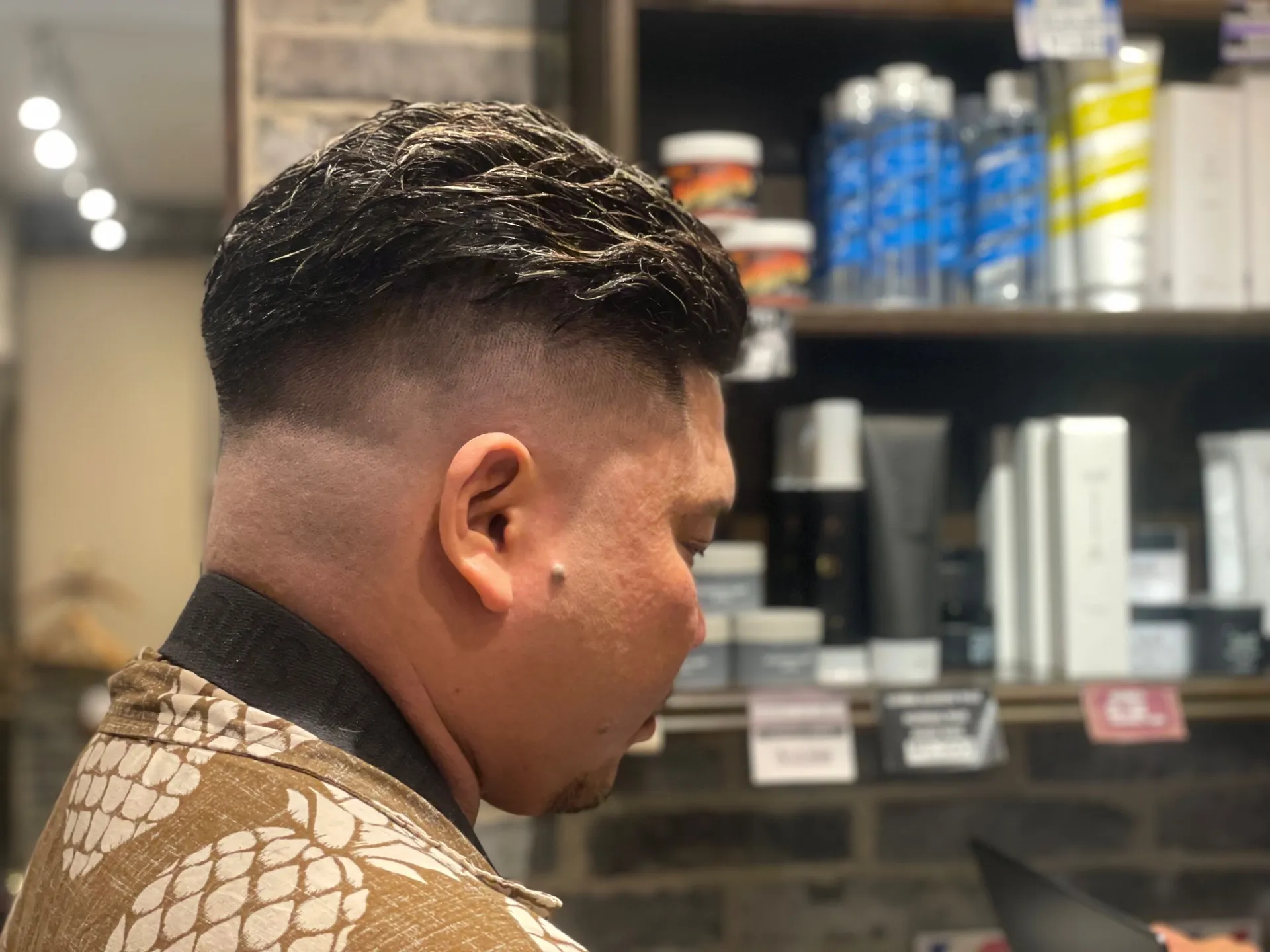 今回のお客様は、サイド〜バックにかけてしっかりとスキンフェードを入れたメリハリ重視のスタイル。